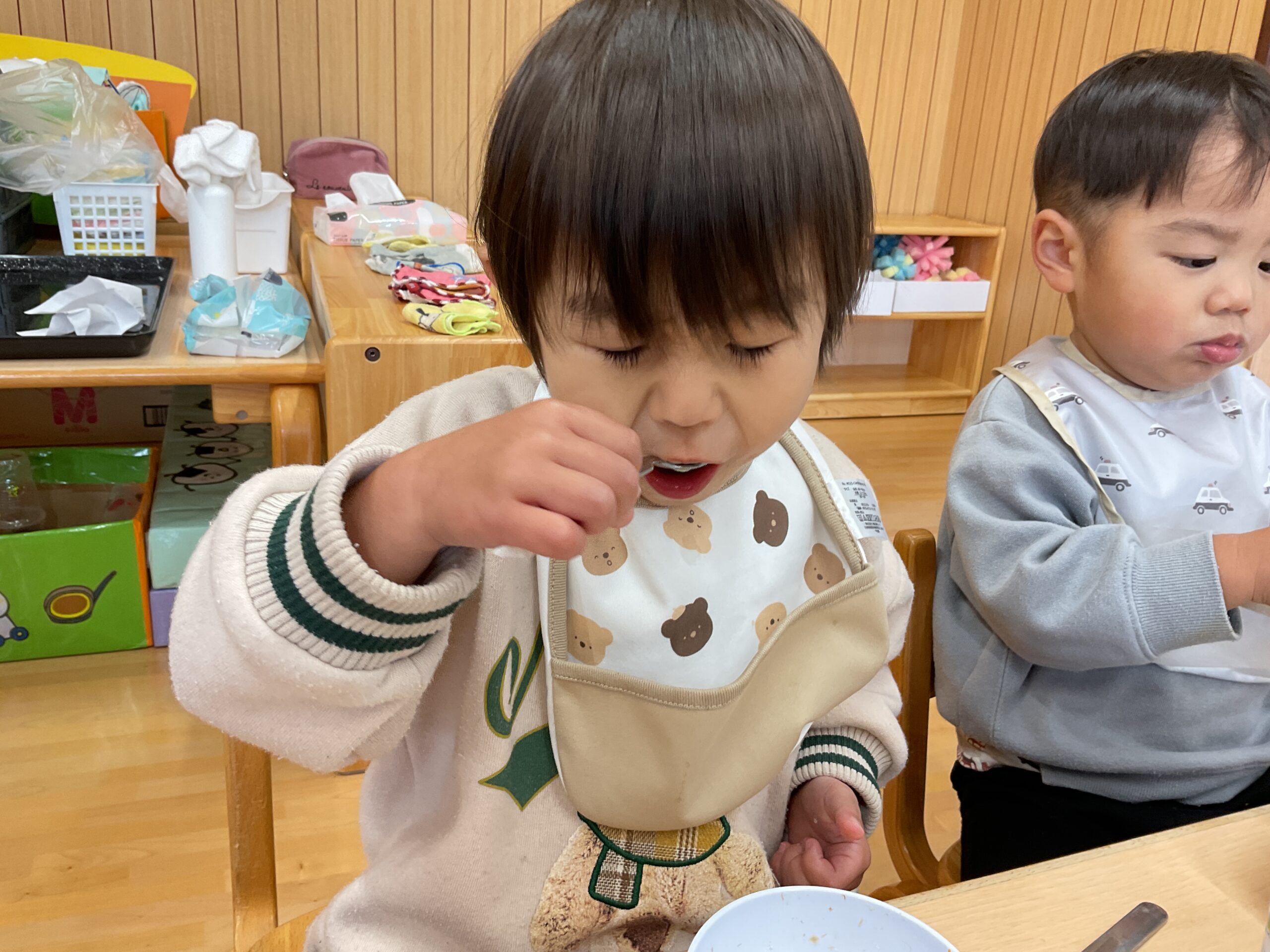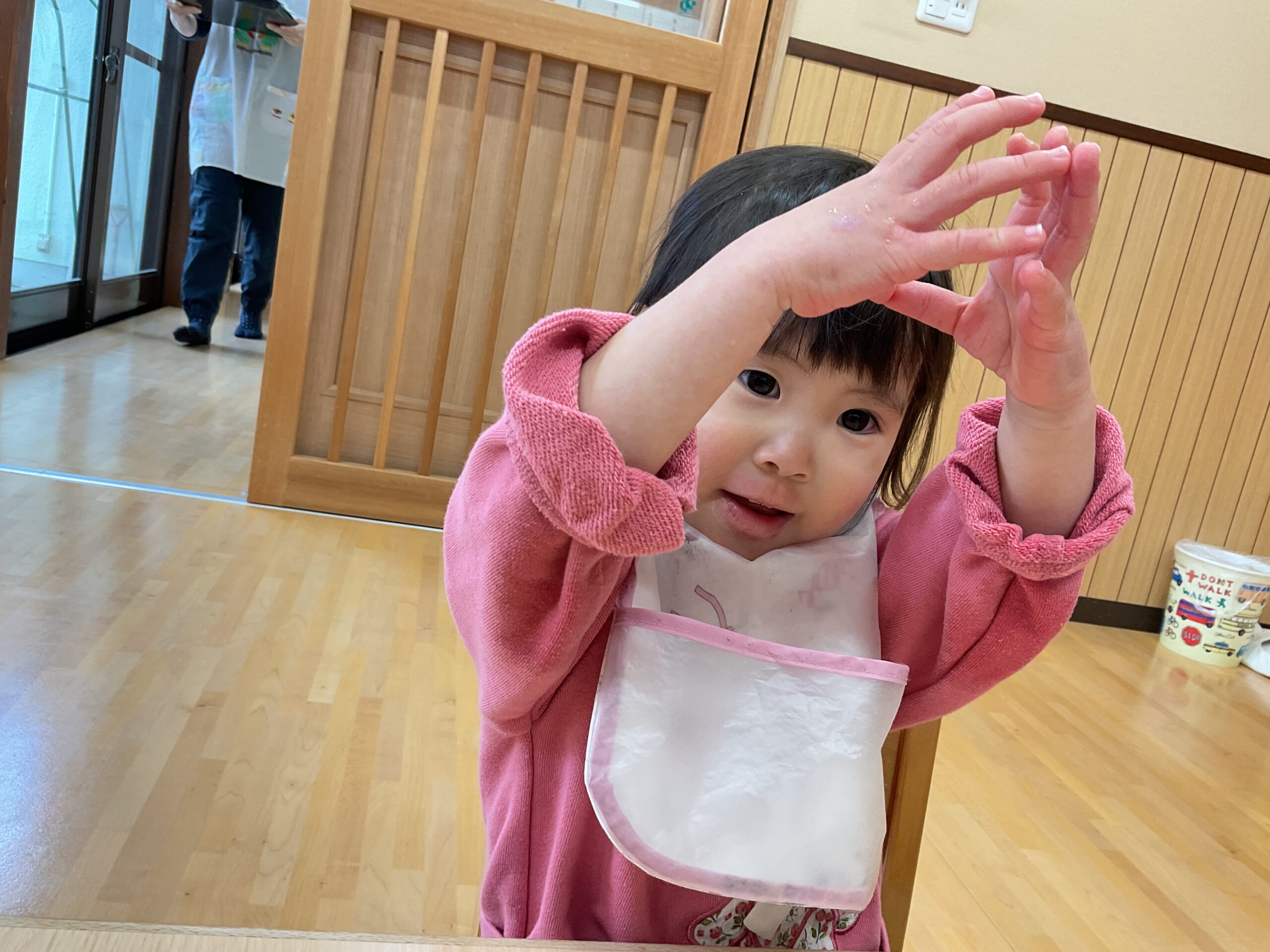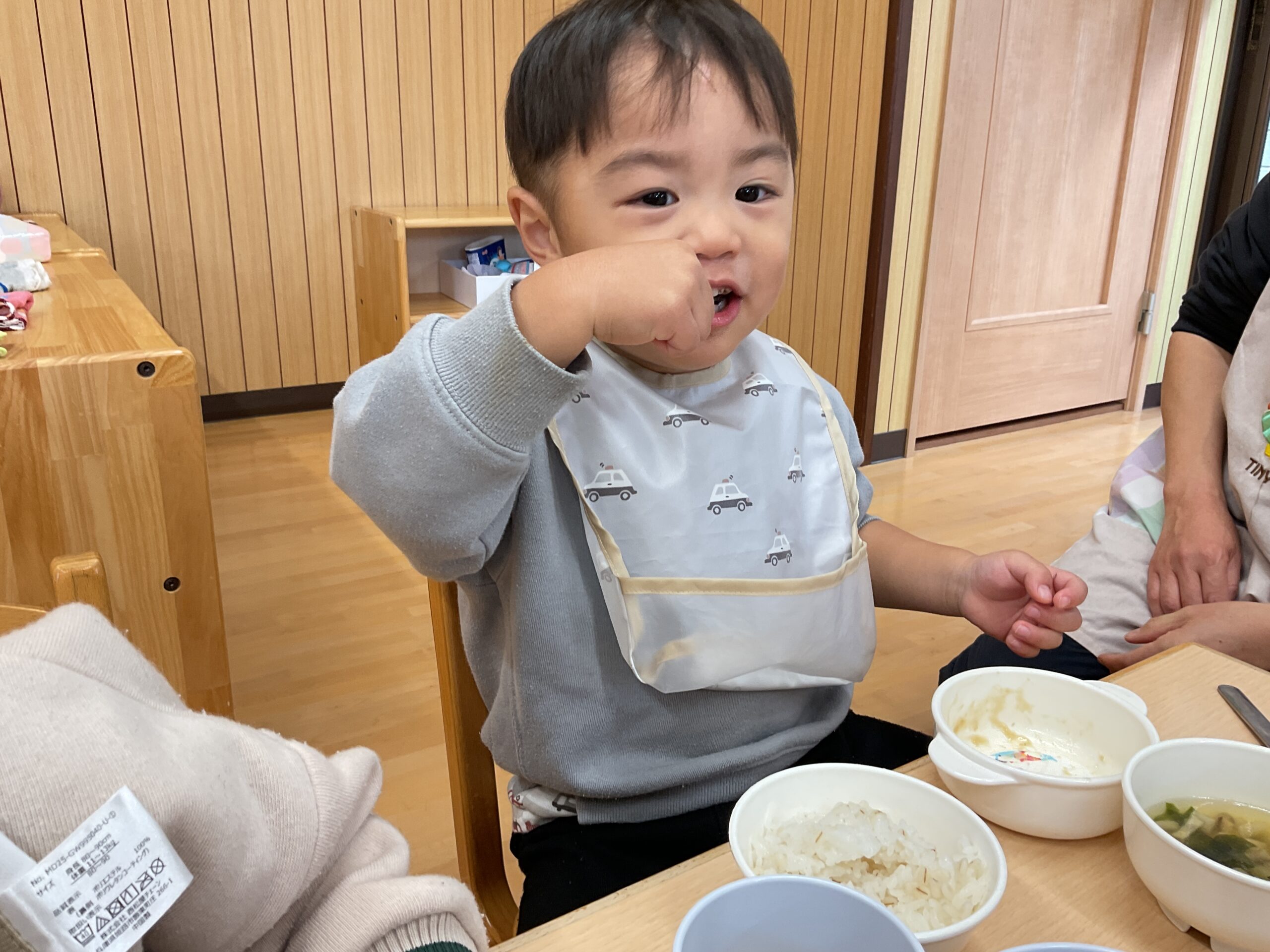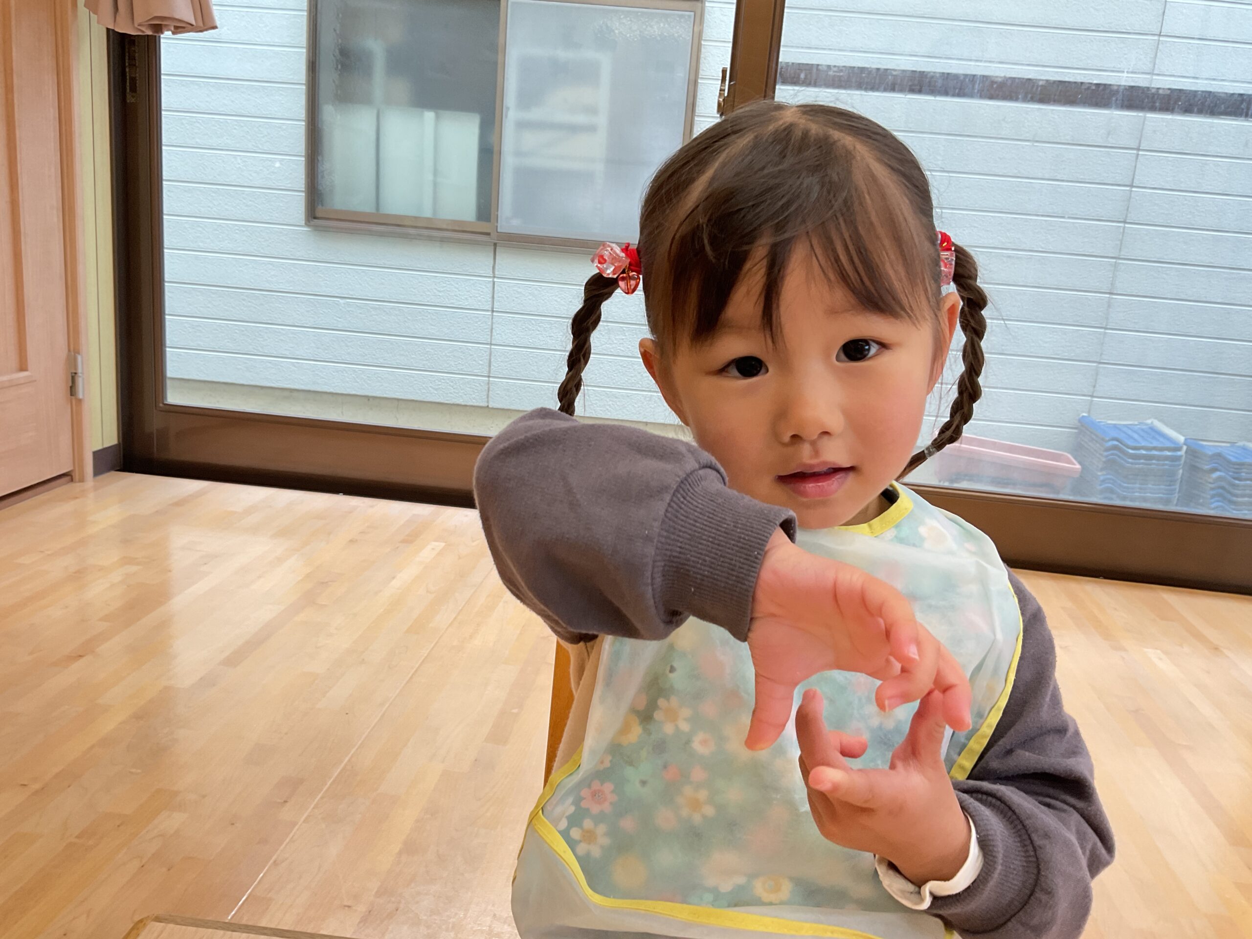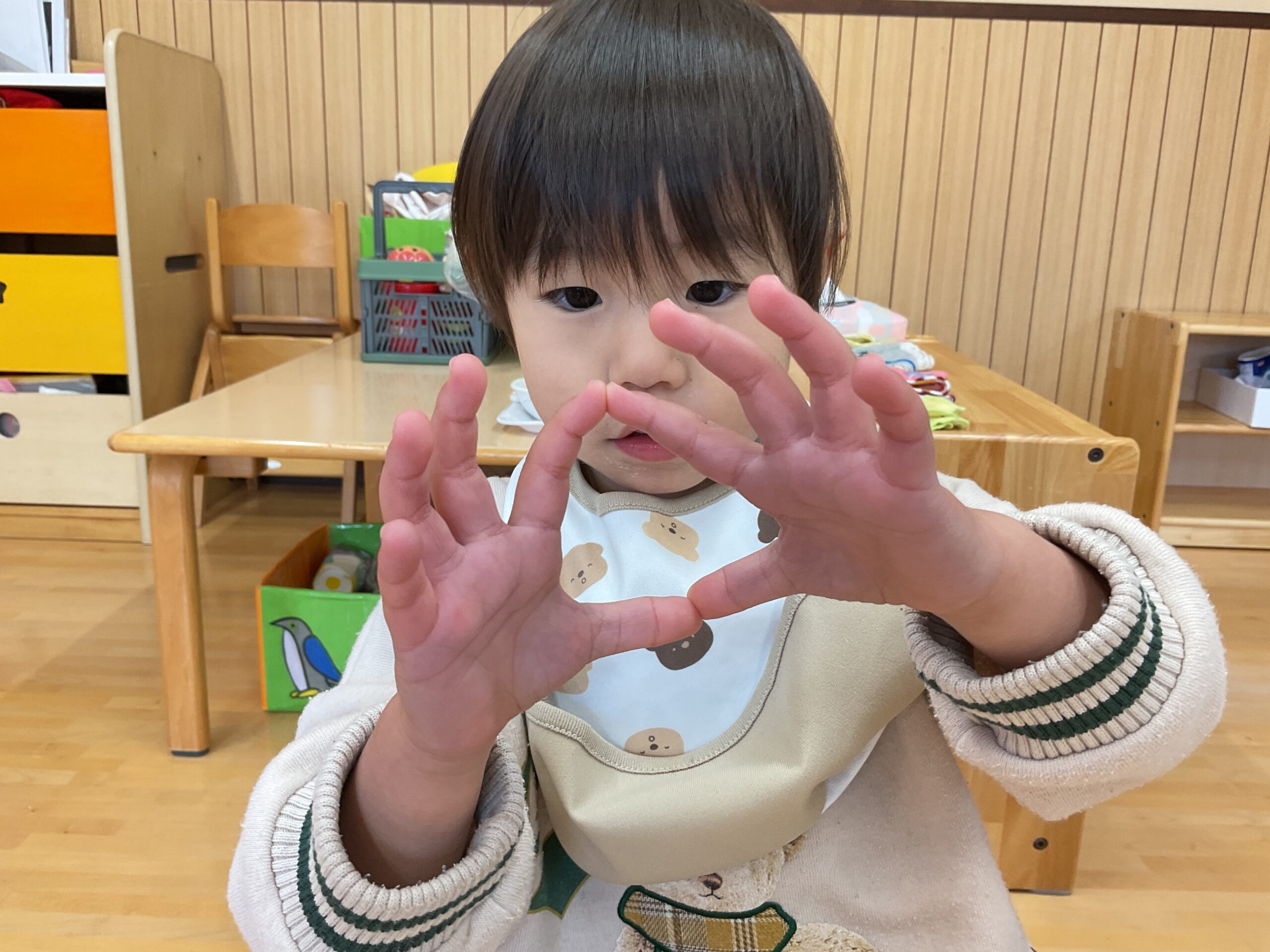 溝辺園日記2025.12.13 🍒まーる,さんかく、しかく🎵 今日の一コマ・・給食前に保育士の三角巾をみた子どもたちが「さんかく~△」と一言🎵 それから形クイズになり、みんなで〇や△、▢を作っていました😊 カメラに気づいてポーズに変更😄 最後の♡はなかなか難しいそうでしたが、一生懸命形を整える子どもたちがとっても可愛いです😄💗 そのあと、おいしい給食をもりもり食べました😚