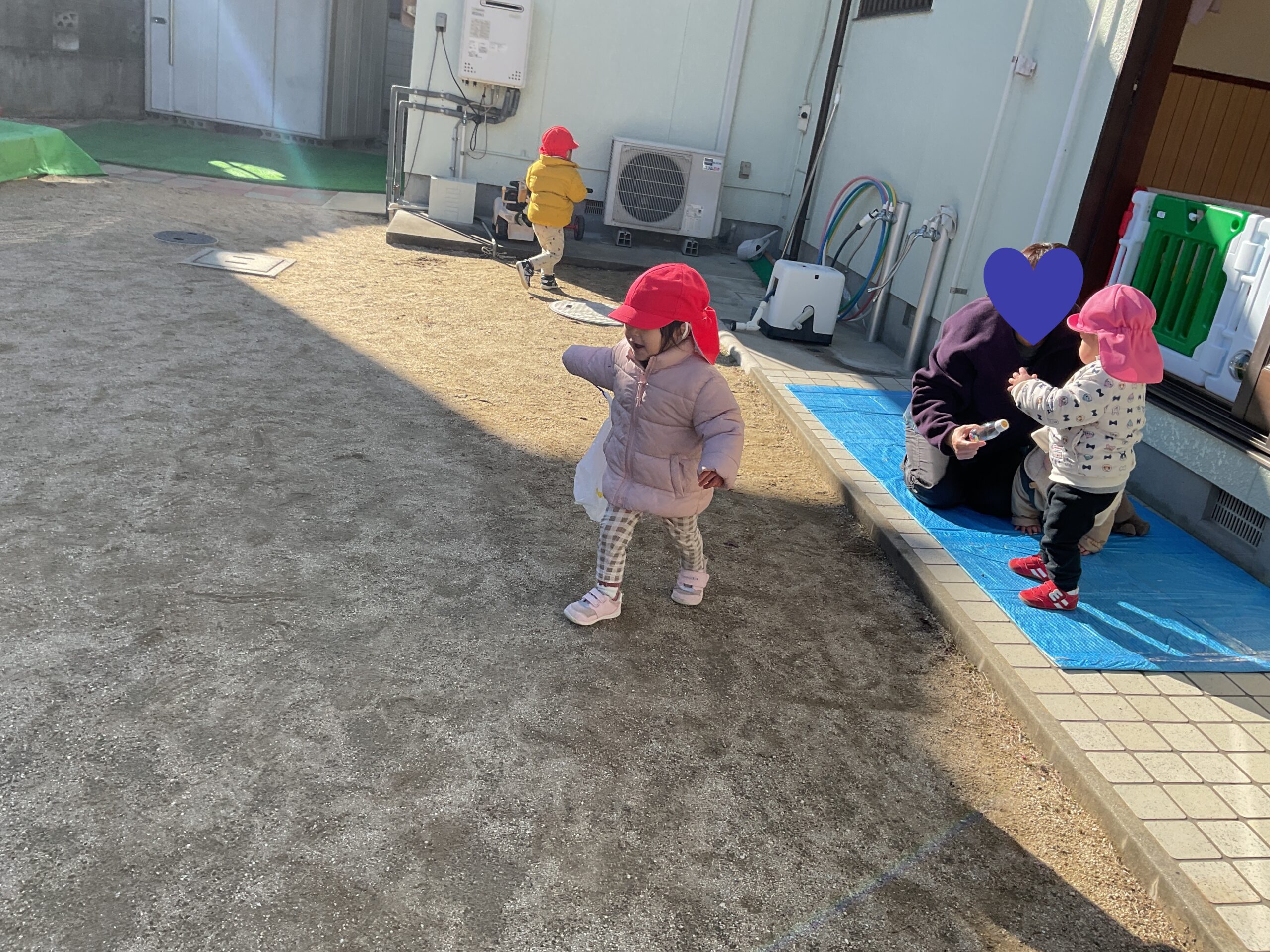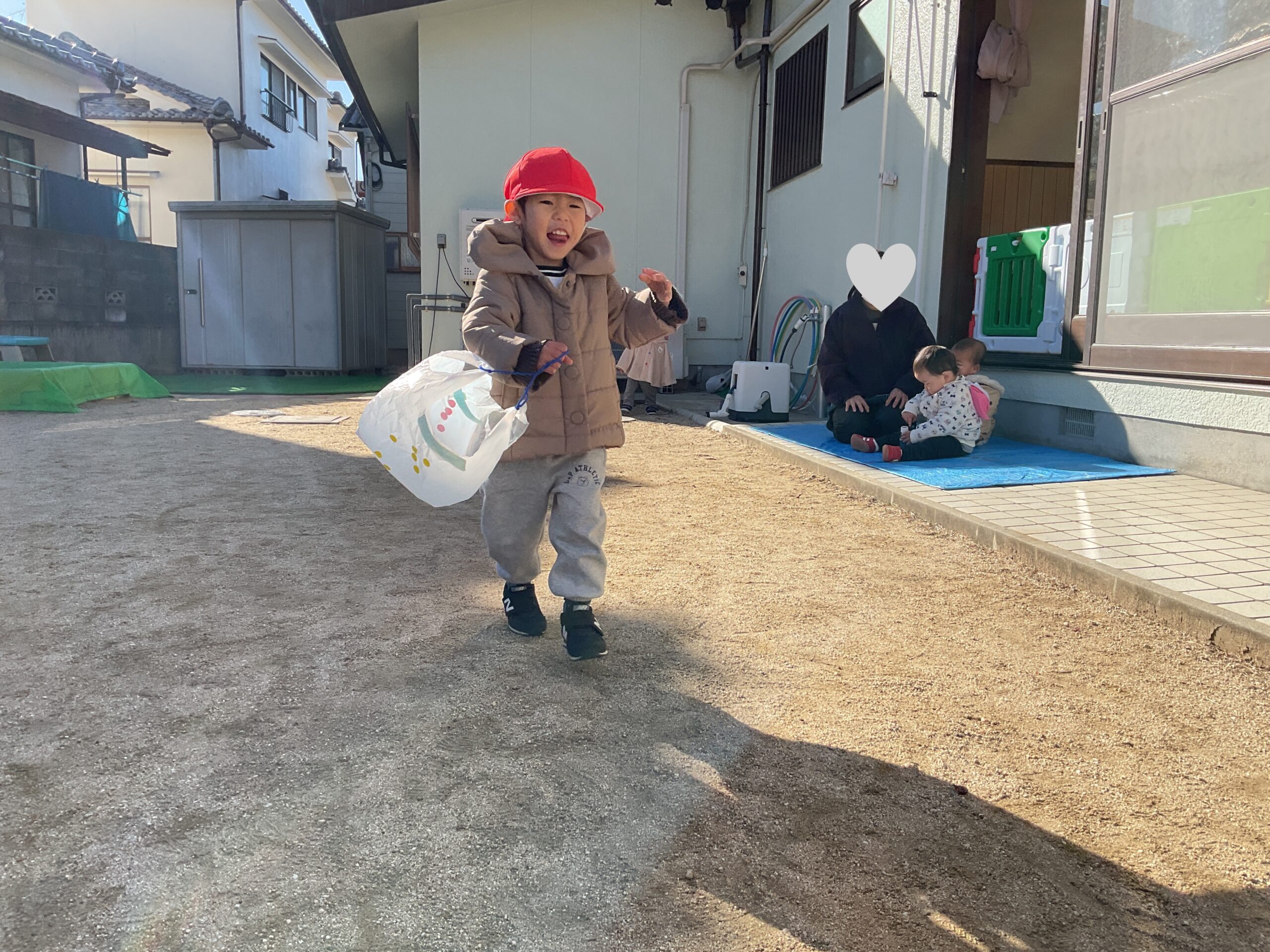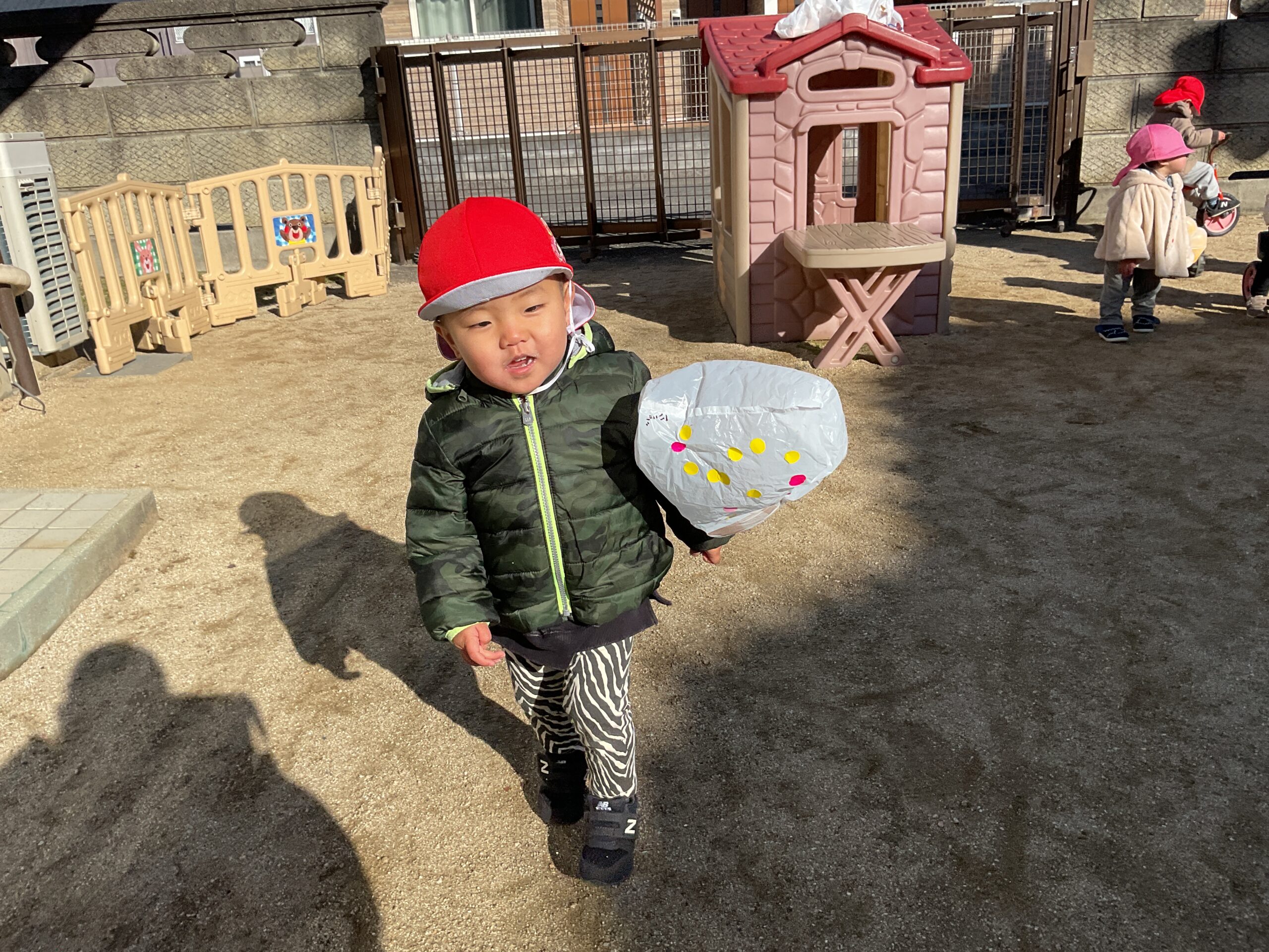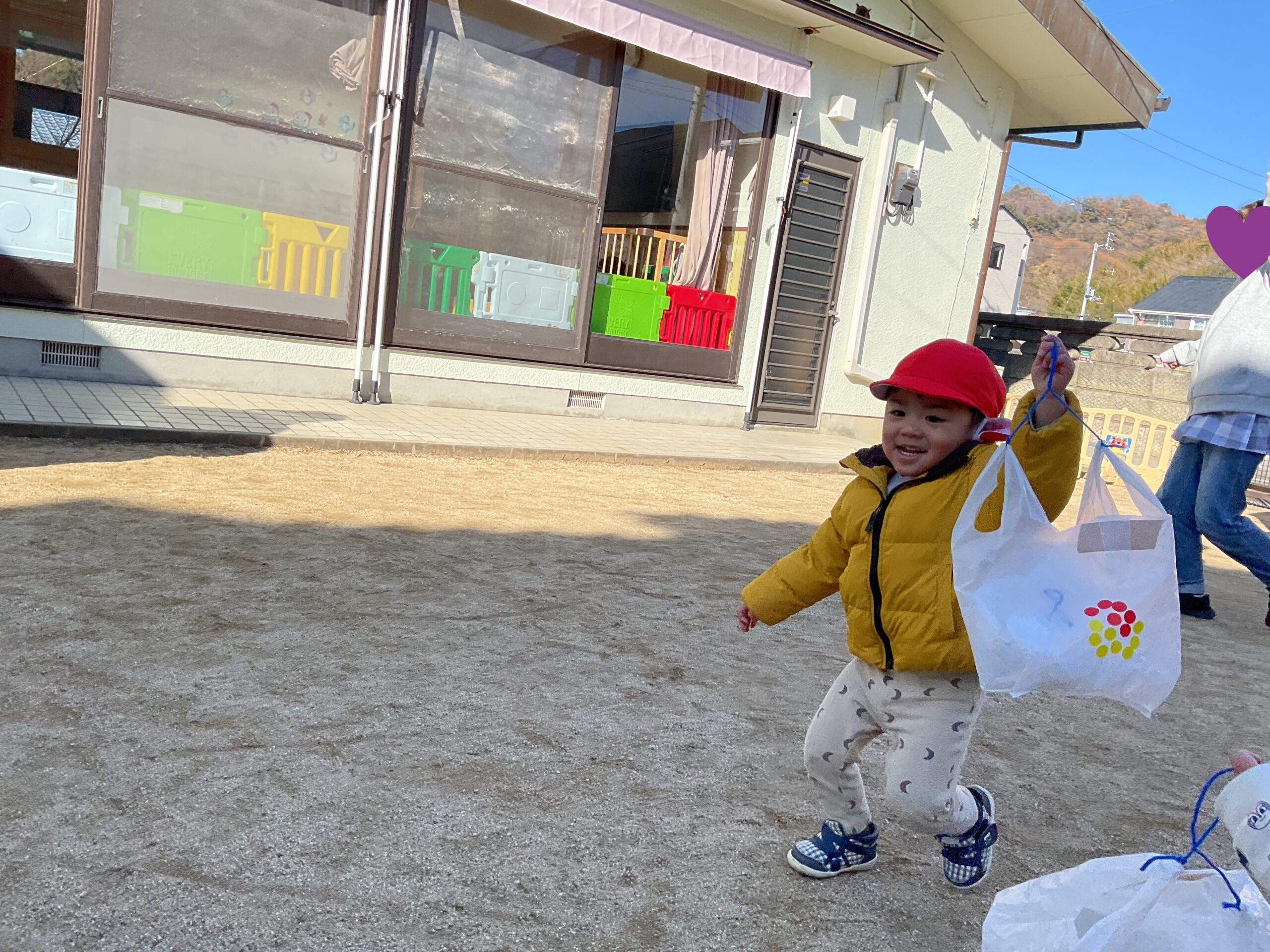 シールを好きなだけペタペタ貼っていざ園庭へ♪