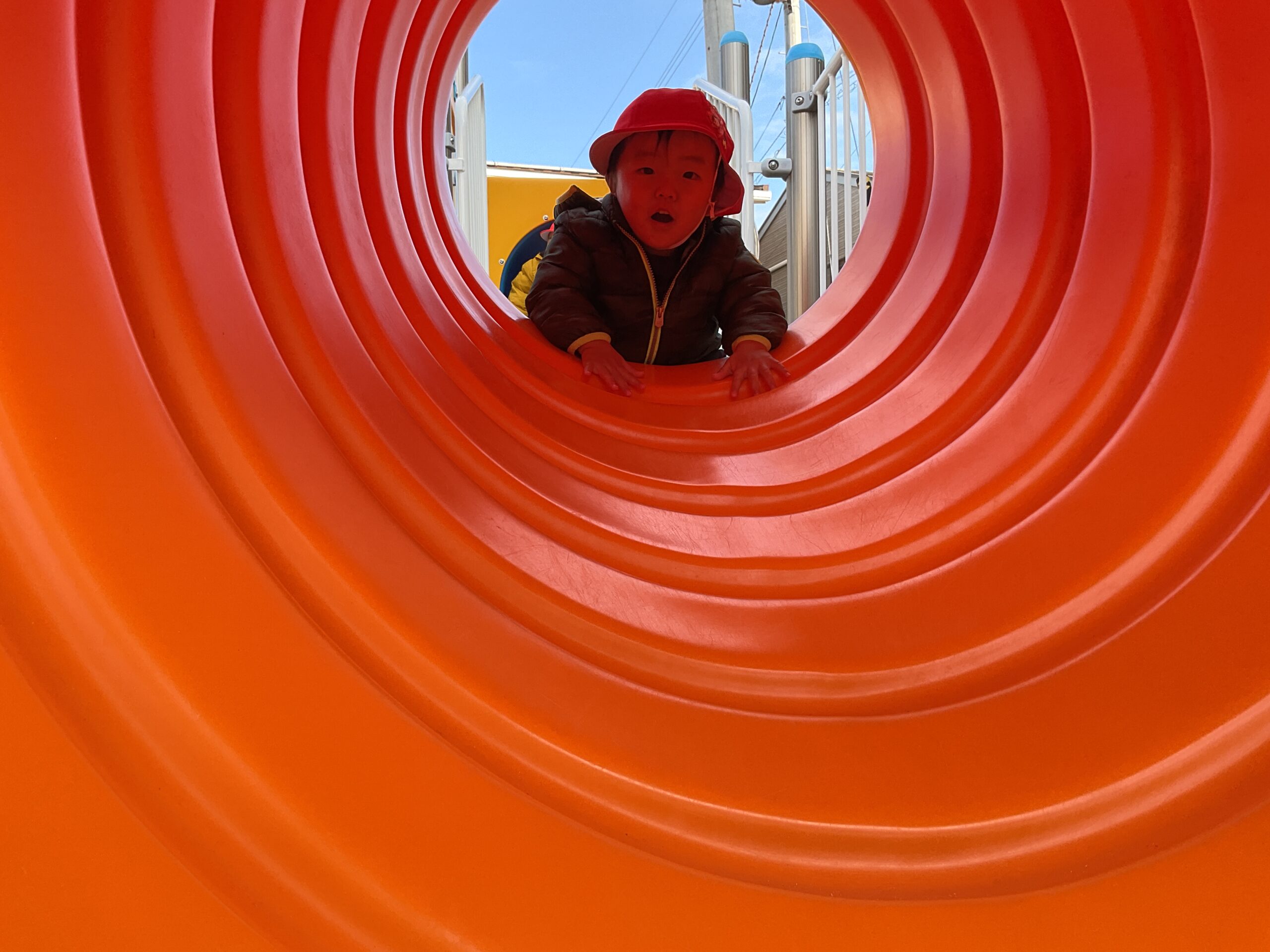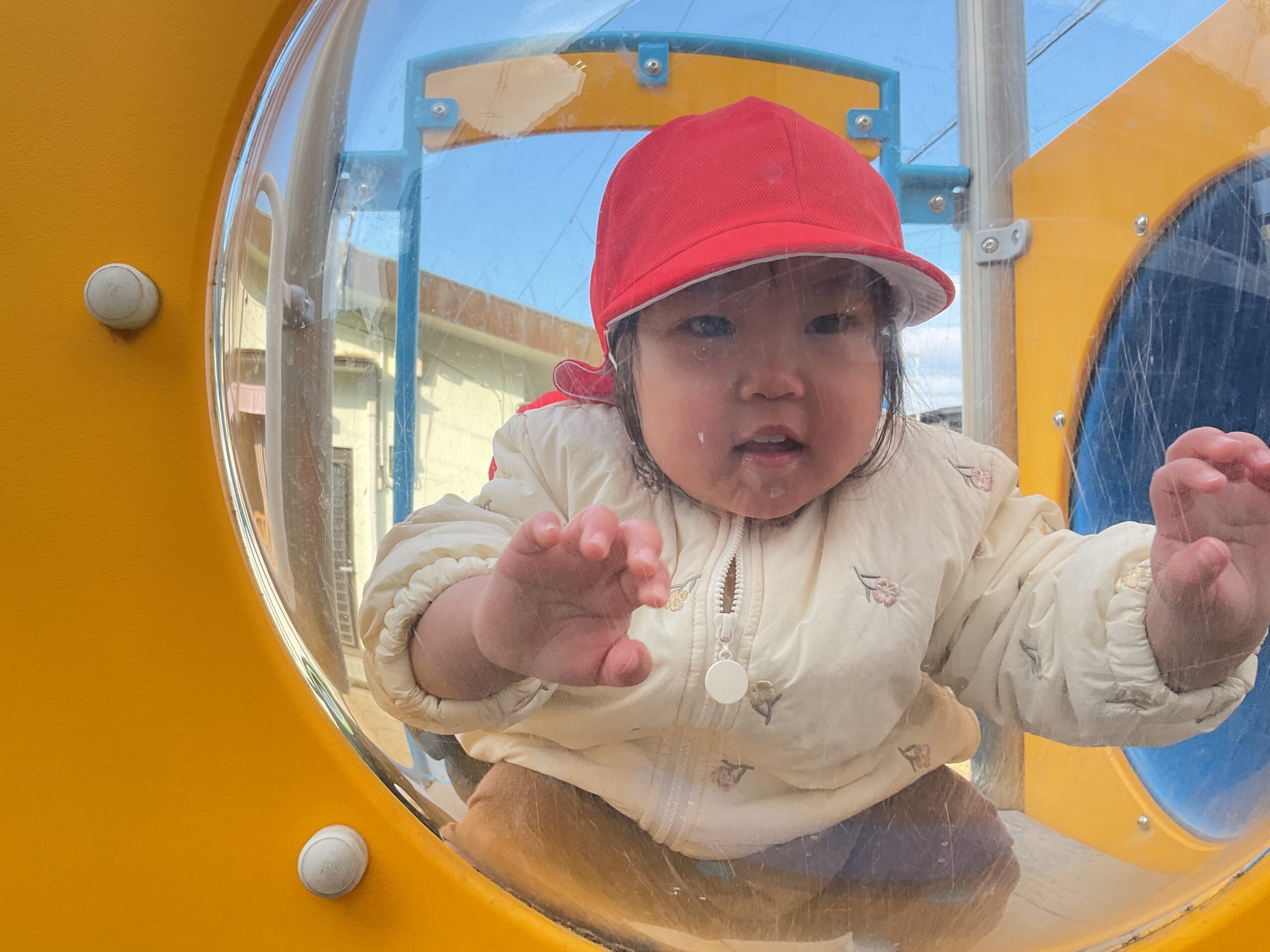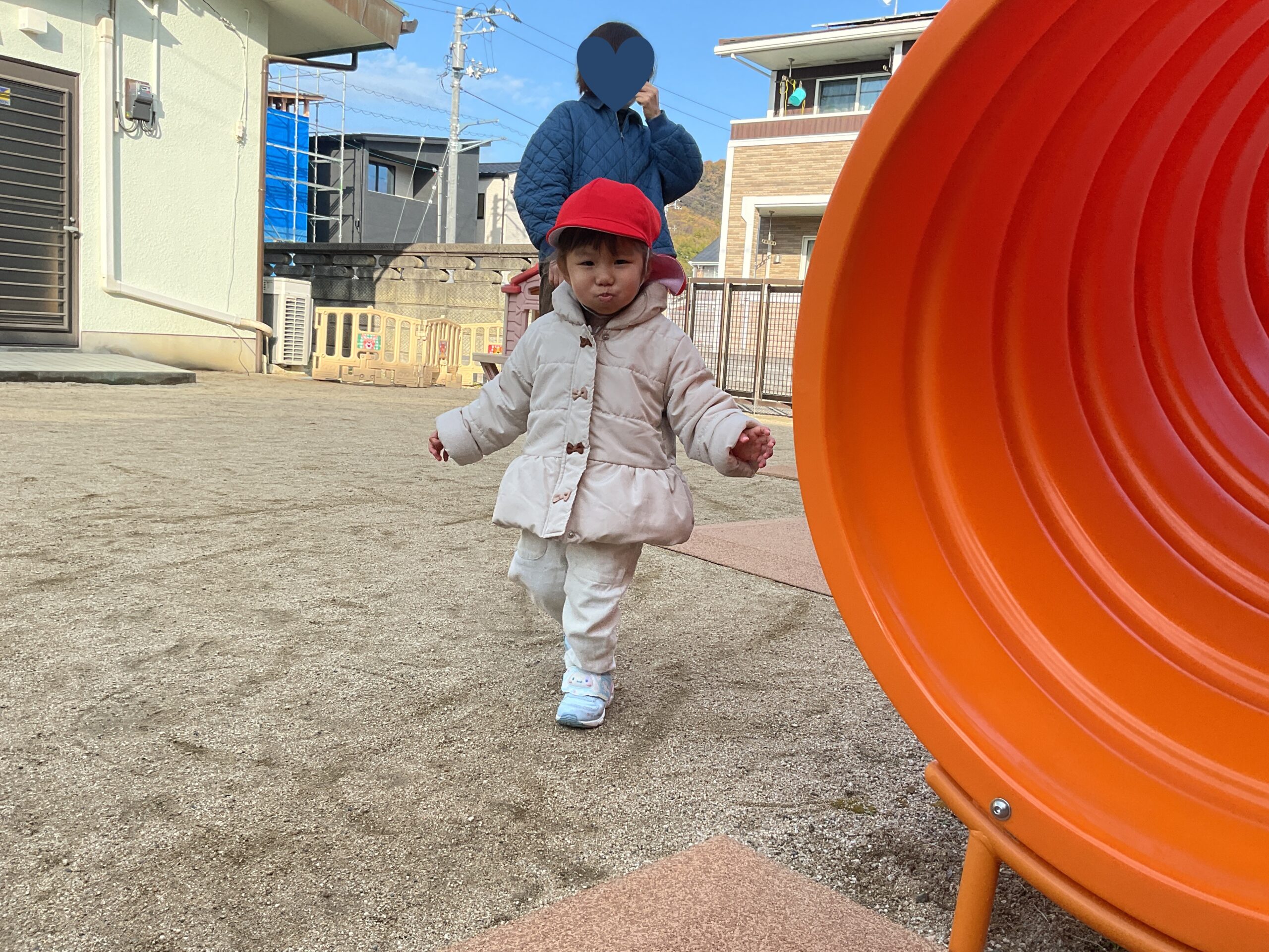 溝辺園日記2025.12.17 🍒寒さに負けない!! 今日は園庭に出て遊びました!寒さに負けずに元気いっぱい遊んでいる子どもたちです😄 最近お気に入り”ばけたくん”の顔真似をしています👻 トンネルの中から…「おーい!!」 「みーつけたっ!」 ショベルカー運転してきました(`・ω・´)ゞ 「つかまえるぞー!」 先生を見つけて「プク~💗」