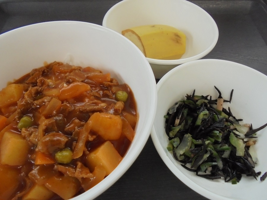 ハヤシライス ひじきのサラダ バナナ です