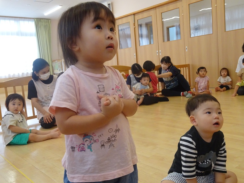 小坂園日記2022.10.04 A・B・C ♪ 今週も英語教室が始まりました♪ 真剣な表情の子どもたち😮 「UP!」 「Hot!」 上手に手で仰ぐ真似をしています🤗 「Small!」 「Short!」 大好きなボールの時間😍 たくさんGETできたね🌟 いつも楽しい英語教室にたくさんの笑顔が見られます😄 また次週も楽しみだね💖